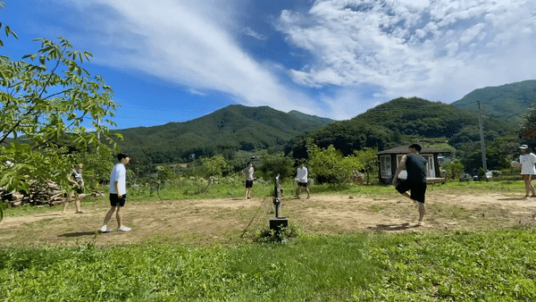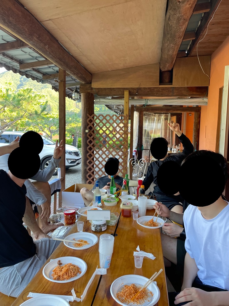 계곡 들어가기전에 가볍게 저녁 준비 내기 족구 한판하고ㅎㅎ