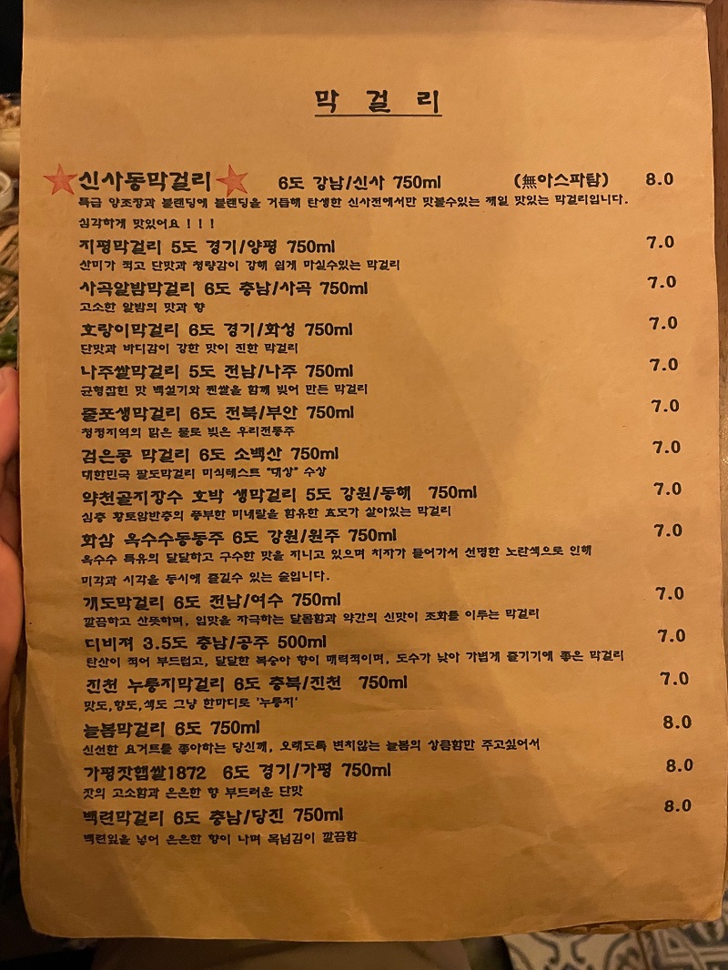 막걸리 맛은 잘모르는데 그냥 여기선 신사동 막걸리 먹는게 짱인 것 같아요.