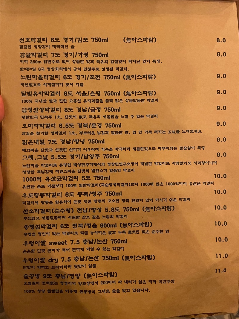 막걸리 종류가 이렇게나 많은지 처음 알았네요