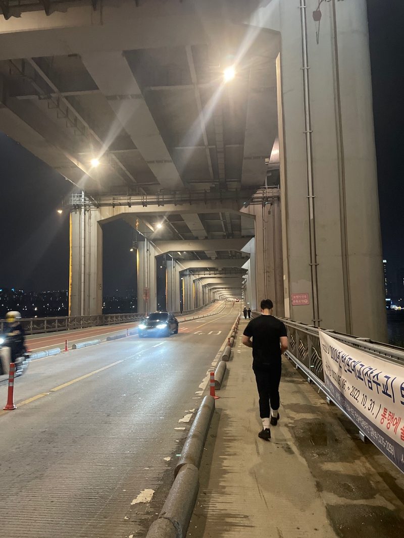 잠수교의 총 길이는 1.5km인데 오르막길&내리막길이 있어요!